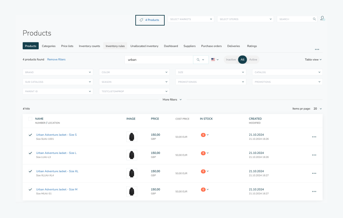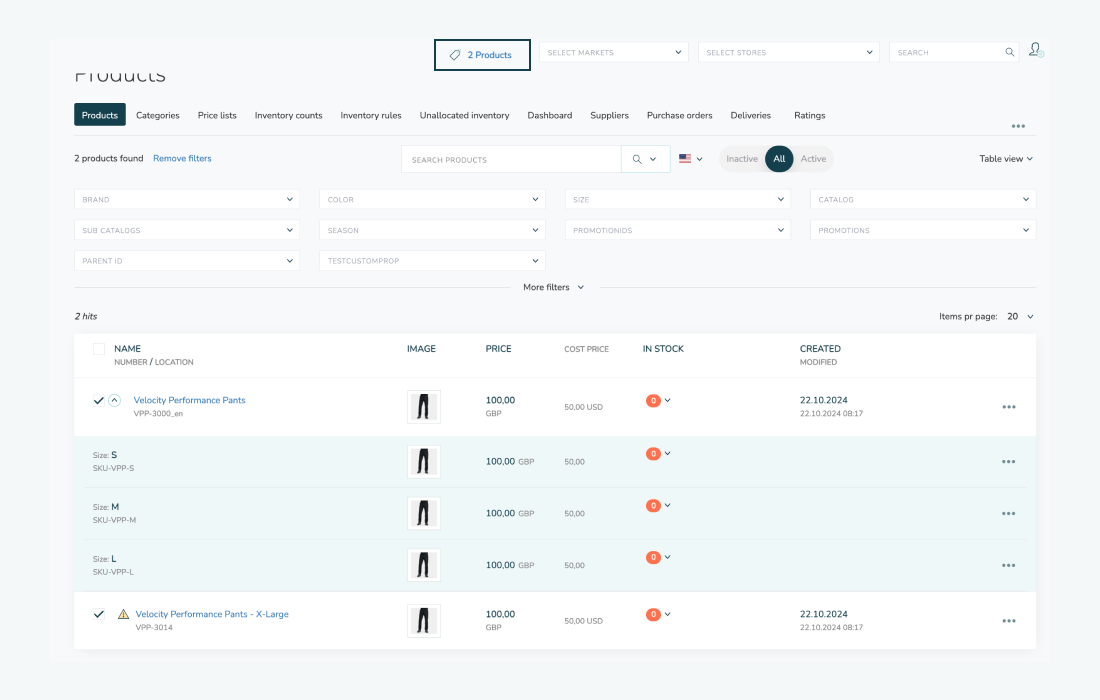 Merge variants is a feature that allows you to combine products that are SKUs (IsSku == true) into one main product. This is especially useful when you have several products representing different versions of the same item, such as different sizes or colors. When merging, the selected products become variants of the main product, and the original products are deleted. For example, if you have three different sizes of a jacket stored as separate products, you can use this function to merge them into one main product with the sizes as variants.