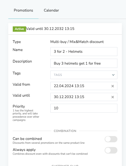 Can be combined: Enable this if the 3 for 2 promotion should work together with other discounts