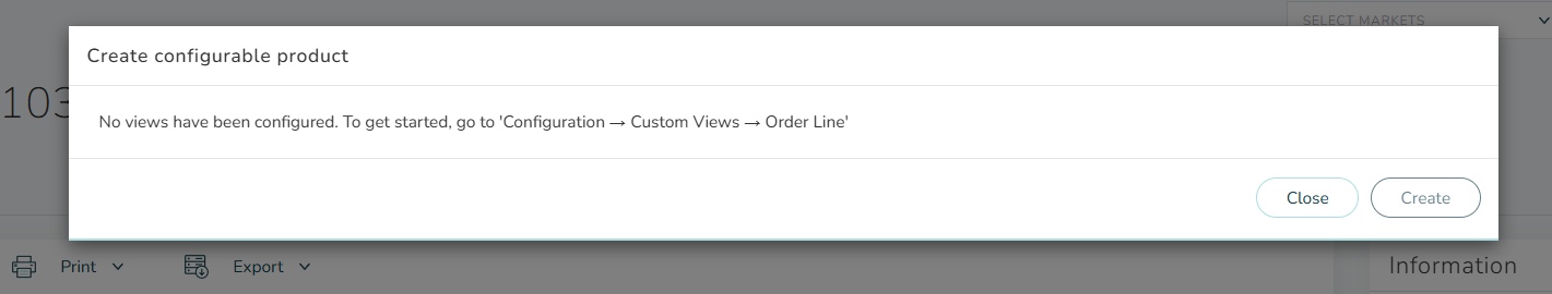 If no view is configured, you will see the following message when trying to create a configurable product: