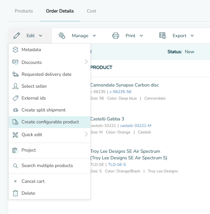 Configurable products allow users to create custom order lines that are not linked to any predefined product in the catalog. These order lines are fully flexible and can be customized with a name, price, description, and other attributes. They are ideal for handling special requests, product modifications, or services that aren’t listed in the catalog.