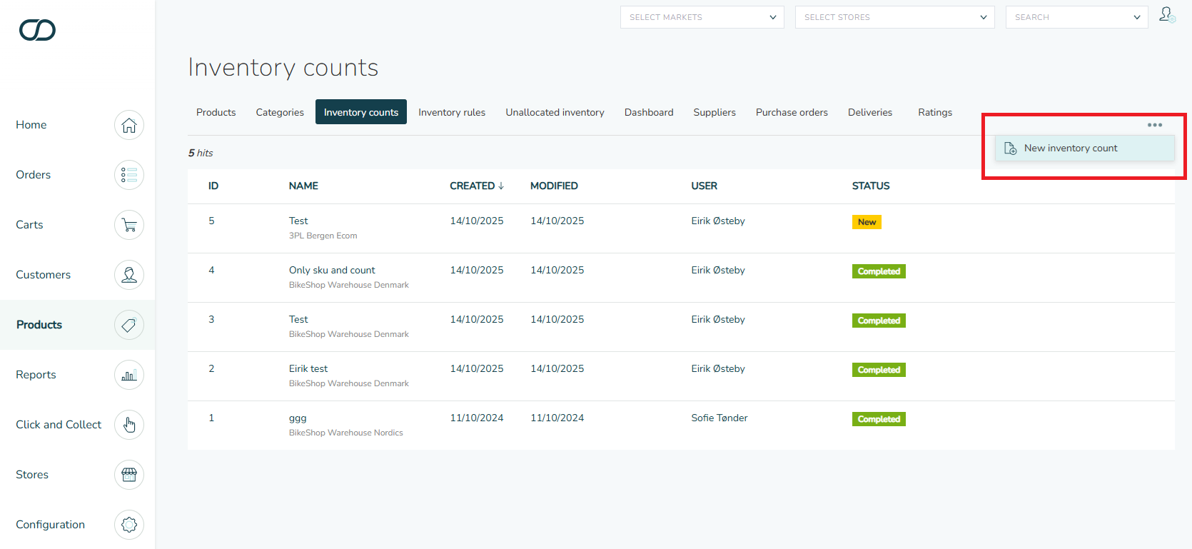 Start by creating a new inventory count under Products > Inventory counts: