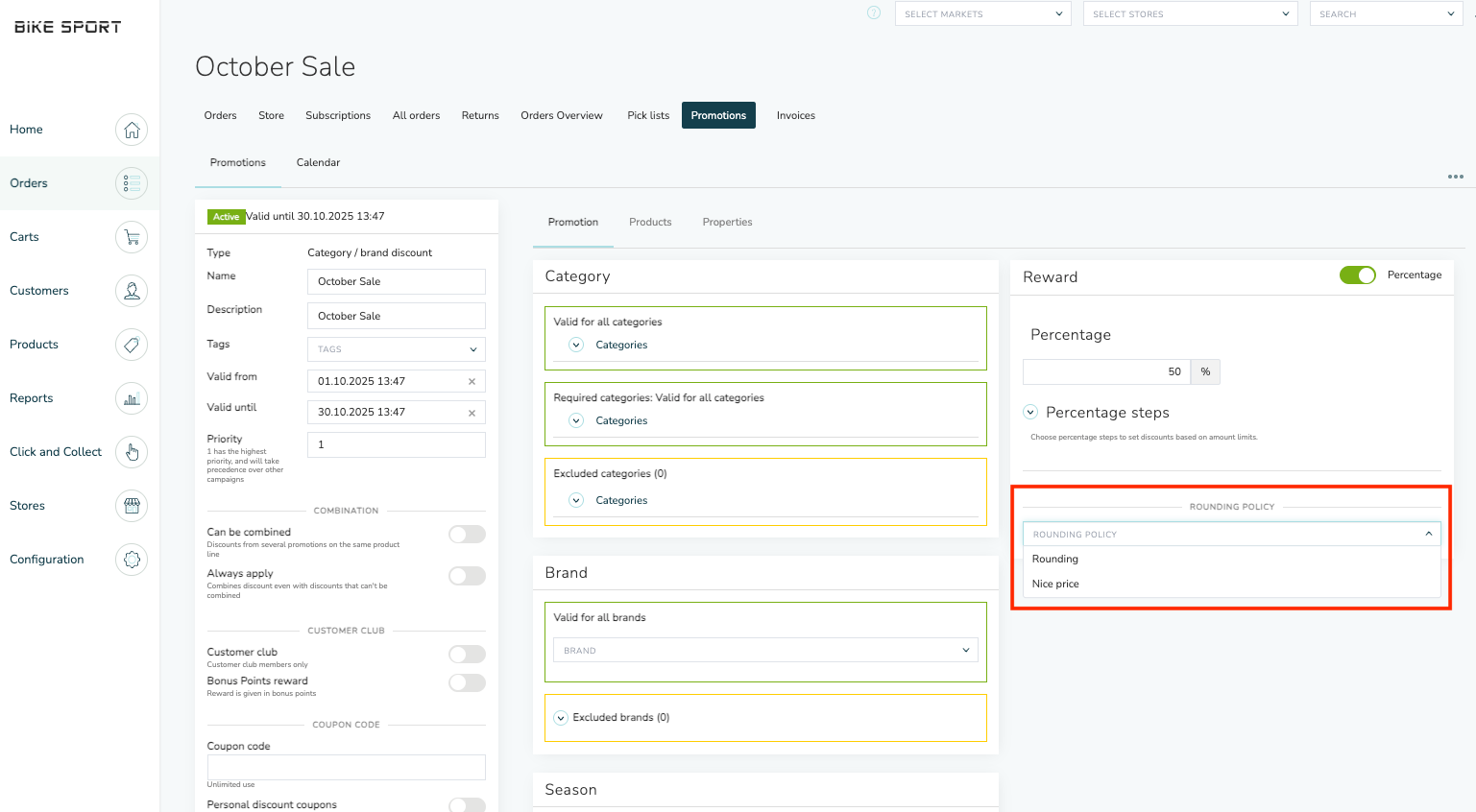 The rounding rules can be applied to price lists and promotions.
