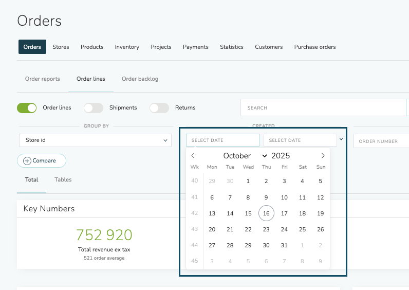 - Created from/to - when the order was created