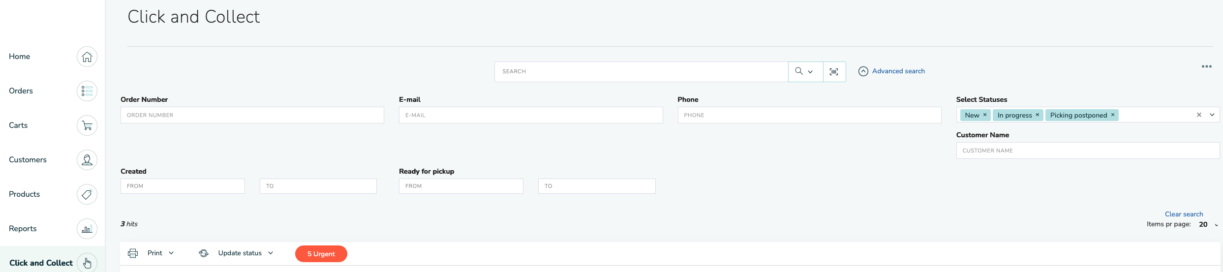 Once an order is placed, it will appear in your Click and Collect list — accessible from the main left-hand navigation menu in Omnium. Access can be filtered by store so employees will see orders placed at their own store.
